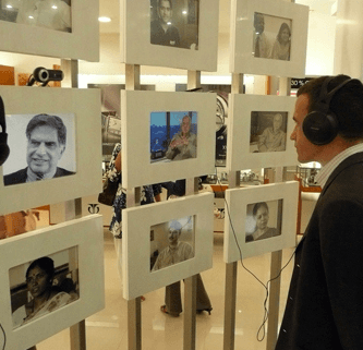 Discuss: Touch-activated portraits and a virtual guest book connect visitors with Titan’s visionaries.